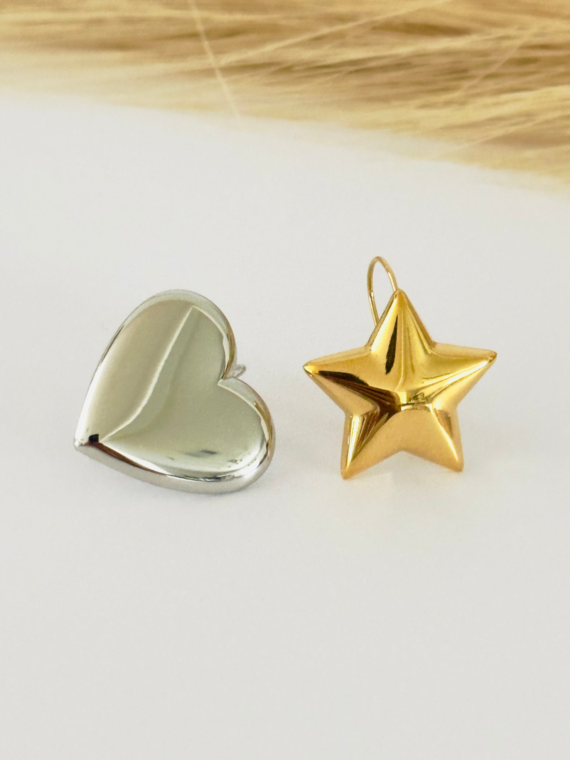 Mix Silver Heart & Gold Star Earrings